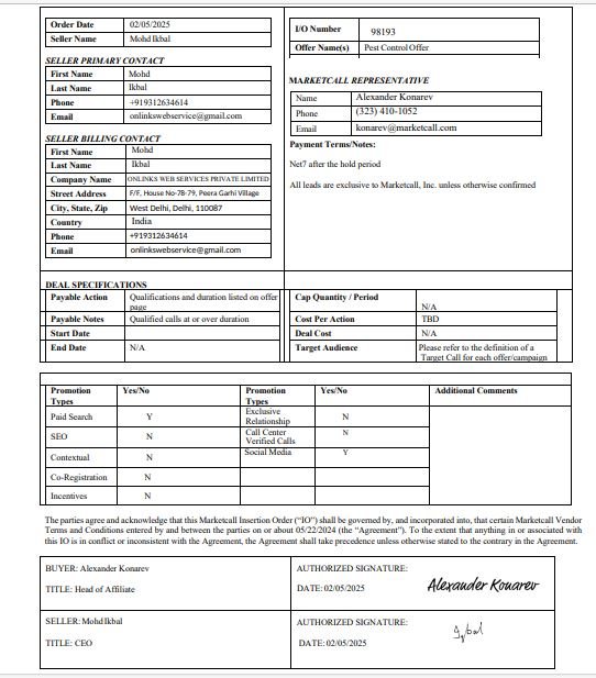 Pest Control Service Limited operates under the support of Onlinks Web Services Pvt. Ltd., working in partnership with Marketcall Inc., a leading American company. Our companies are bonded through an IO agreement, ensuring seamless collaboration and enhanced service delivery.